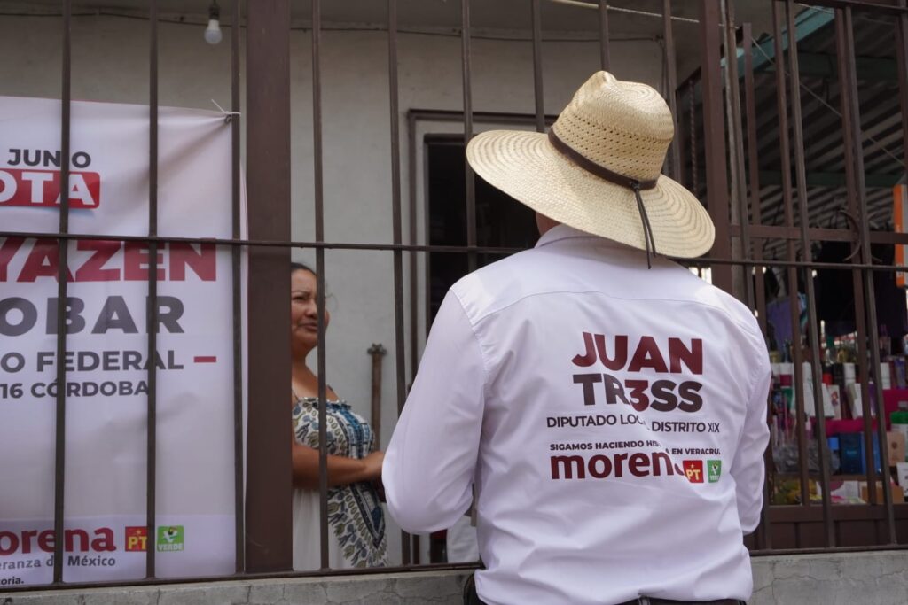 Durante su recorrido por la colonia Fraternidad Antorchista en Córdoba, en su quinto día de campaña y en compañía, una vez más, del candidato a diputado Federal por el Distrito 16, Zenzayen Escobar García, ambos de la coalición Morena, PT y PVEM, escuchando la preocupación de los padres de familia, centradas en el tema de las becas para alumnos que no cuentan con ese beneficio.