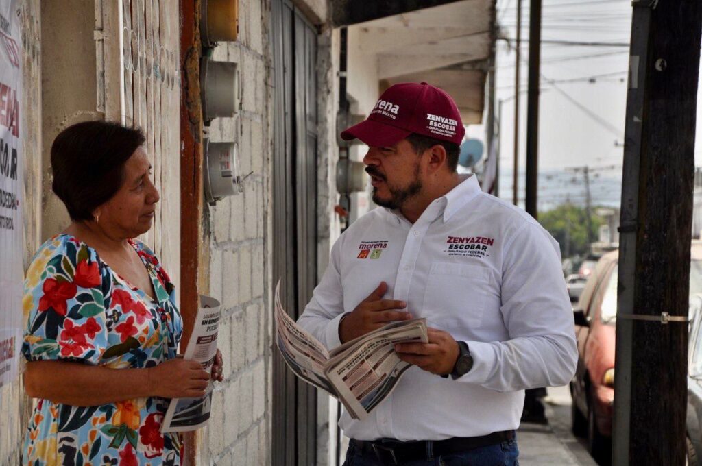 Córdoba, Ver., 16 de abril de 2024.- El candidato a diputado federal por el Distrito 16 de la coalición “Sigamos Haciendo Historia”, Zenyazen Escobar, reiteró su compromiso con la cercanía y el contacto directo con la ciudadanía al superar los primeros 45 días de recorridos casa por casa.